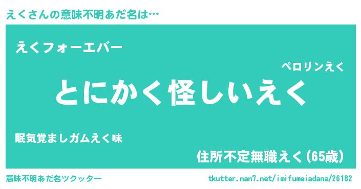 | 男性向けラノベタイトル風あだ名 | 『えくの嫁は女の子じゃないと思った?』 |