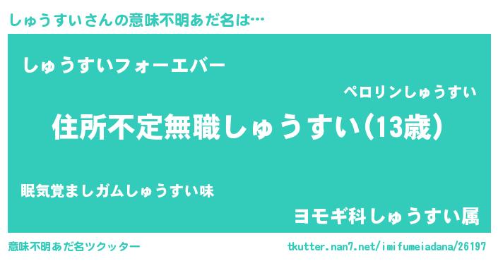 | 男性向けラノベタイトル風あだ名 | 『この素晴らしい世界にしゅうすいを!』 |