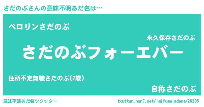 | ヒーロー風カッコイイあだ名 | 『ウルトラさだのぶマン』『ネオサダノブ』 |