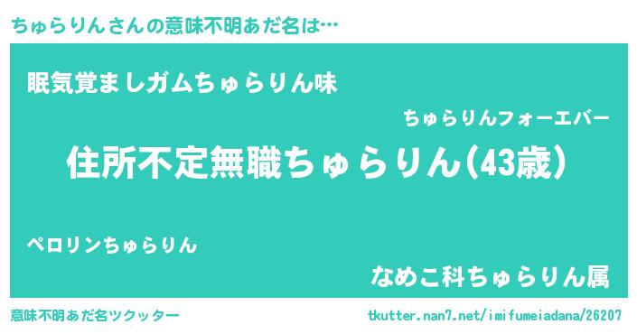| 料理風あだ名 | 『ちゅらりんのカルパッチョ風』 |
