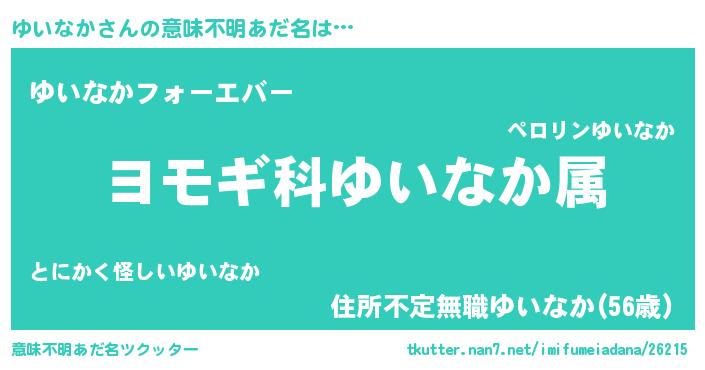 | 女子向けラノベタイトル風あだ名 | 『ゆいなかの玉の輿計画!』 |