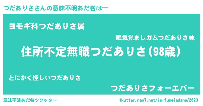 | ヒーロー風カッコイイあだ名 | 『仮面ツダダー』『慈愛の使者つだありさ』 |