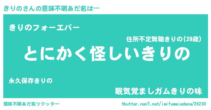 | ヘコむあだ名 | 『きりっ子』『豆乳』『きりの(苦笑)』 |