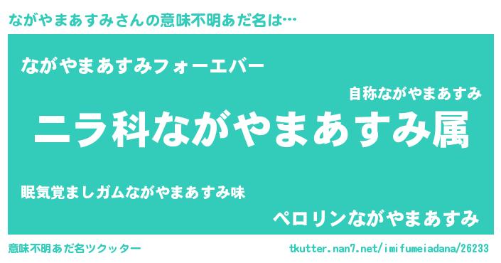 | 肩書あだ名 | 『ながやまあすみ中佐』 |