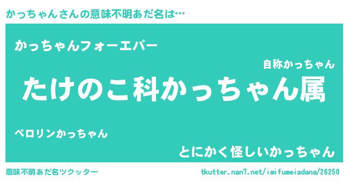 | 男性向けラノベタイトル風あだ名 | 『転生したらかっちゃんだった件』 |