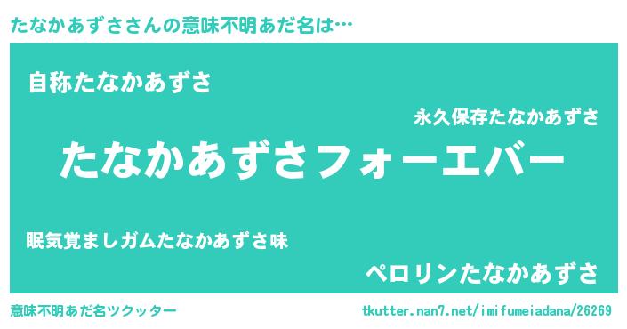 | 恥ずかしいあだ名 | 『たなっちょ』『タナカアズサデラックス』 |