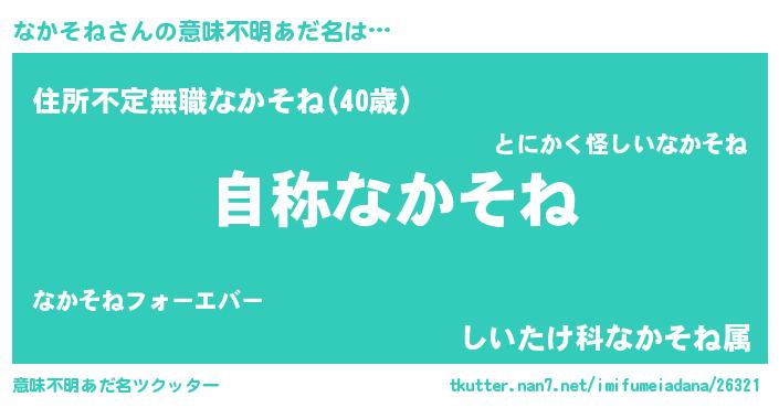 | 男性向けラノベタイトル風あだ名 | 『Re:なかそねから始める異世界生活』 |