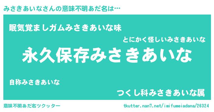 | 欧米人風あだ名 | 『ダルビッシュみさきあいな』 |