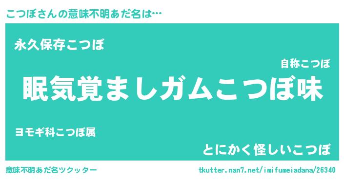 | 女子向けラノベタイトル風あだ名 | 『死神こつぼの再婚』『こつぼ様がみてる』 |