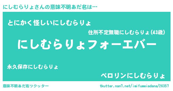 | ファンタジー風あだ名 | 『エターナルニシムラリョー』 |