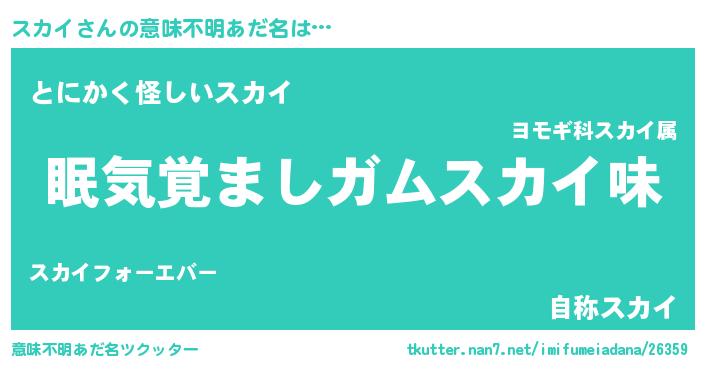 | 女子向けラノベタイトル風あだ名 | 『スカイ恋絵巻』『スカイ様がみてる』 |