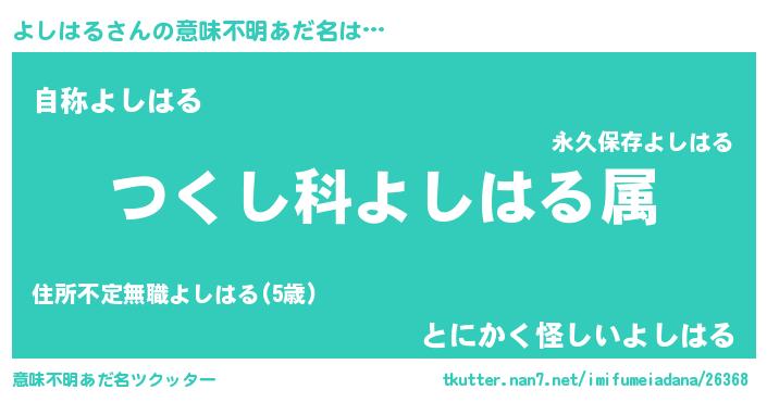 | ヘコむあだ名 | 『よしっ子』『よしはる(笑)』 |