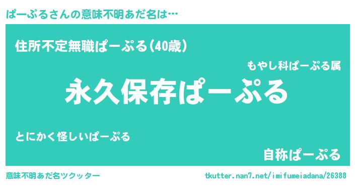 | 男性向けラノベタイトル風あだ名 | 『ぱーぷるという概念が存在しない退屈な世界 』 |