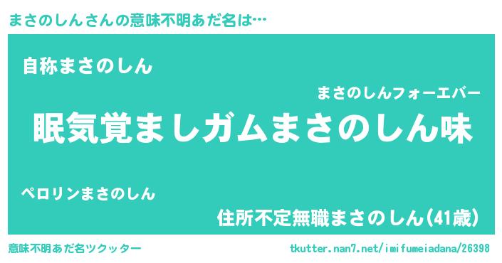 | 男性向けラノベタイトル風あだ名 | 『ノーゲーム・ノーマサノシン』 |