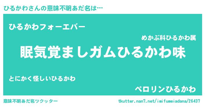 | ヒーロー風カッコイイあだ名 | 『天空の使者ひるかわ』『暗黒騎士ヒル』 |