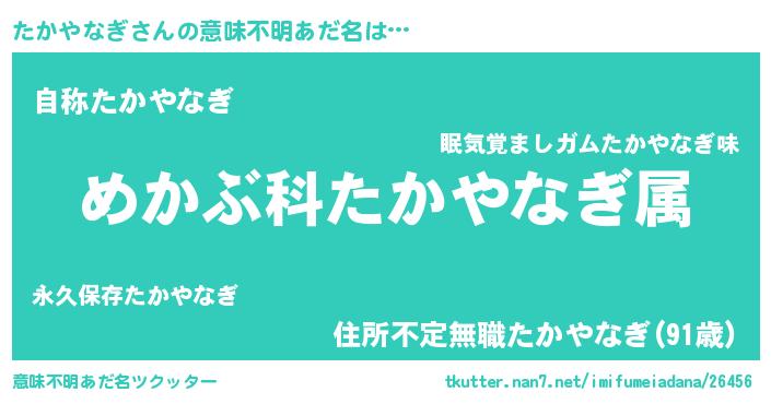 | 男性向けラノベタイトル風あだ名 | 『タカヤナギスレイヤー』 |