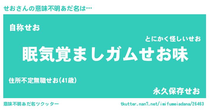 | 女子向けラノベタイトル風あだ名 | 『せお夫妻のなれそめ』『せおの契約王妃』 |