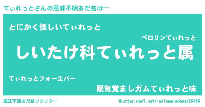 | 胡散臭い通販商品みたいなあだ名 | 『信頼と実績のサプリメント…その名も「てぃれっと」』 |