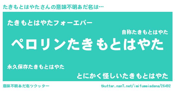 | 胡散臭い通販商品みたいなあだ名 | 『必ず成功するブレスレット…その名も「たきもとはやた」』 |