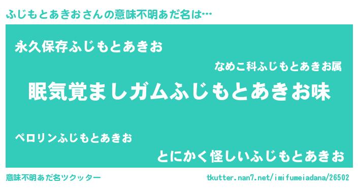 | ヘコむあだ名 | 『ふじもとあきお(震え声)』『ふじお』 |