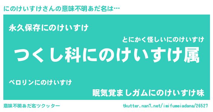 | 男性向けラノベタイトル風あだ名 | 『にのけいすけ~年齢イコール彼女いない歴の魔法使い~』 |