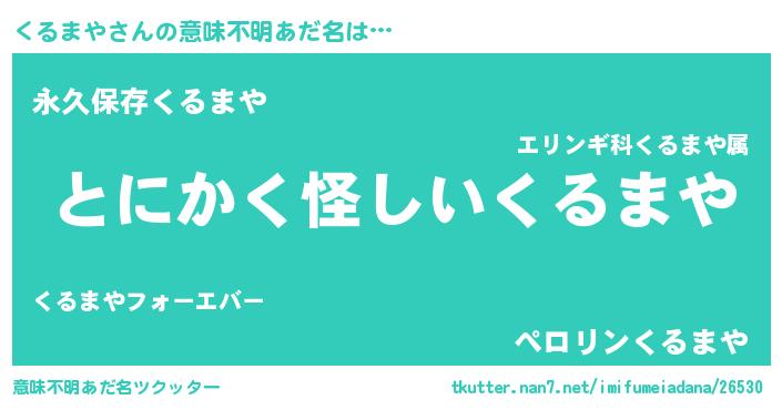 | ヘコむあだ名 | 『くるぷりん』『くるまや(苦笑)』 |