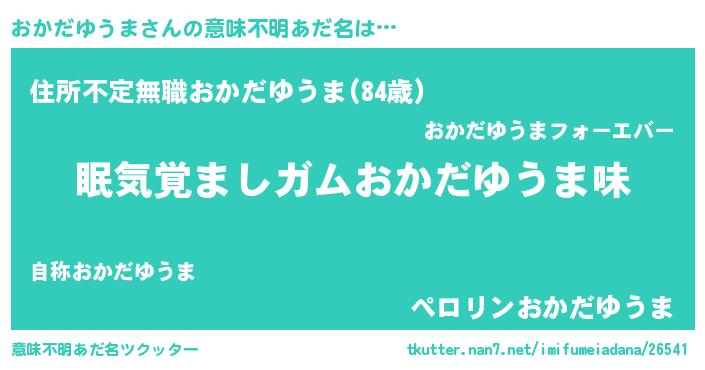 | 胡散臭い通販商品みたいなあだ名 | 『モンドセレクションを受賞した隕石のかけら…その名も「おかだゆうま」』 |