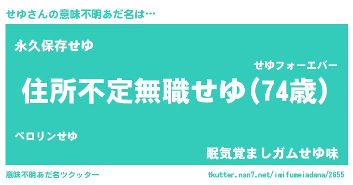 | 男性向けラノベタイトル風あだ名 | 『うちのせゆが世界を掌握している!』 |