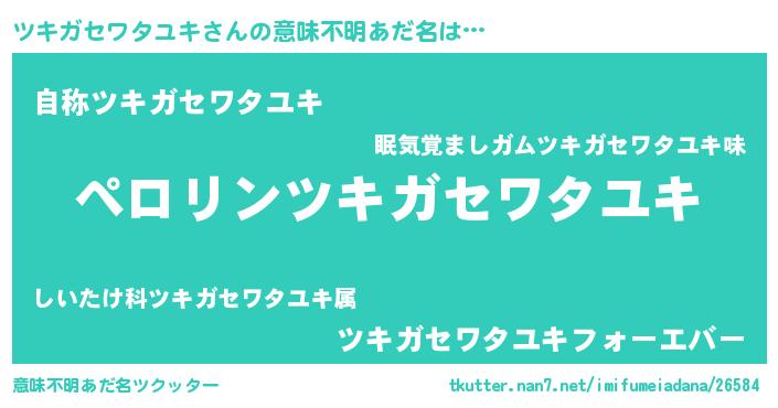| 男性向けラノベタイトル風あだ名 | 『ツキガセワタユキアートオンライン』 |