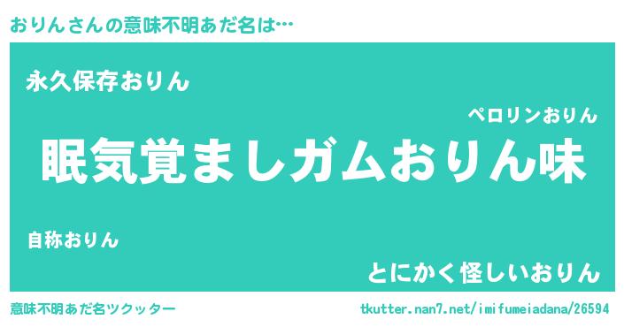 | 欧米人風あだ名 | 『アンジェラ・おりん』『ダニエルおりん』 |