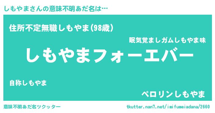 | 欧米人風あだ名 | 『しもやま・ステッグマイヤー』 |