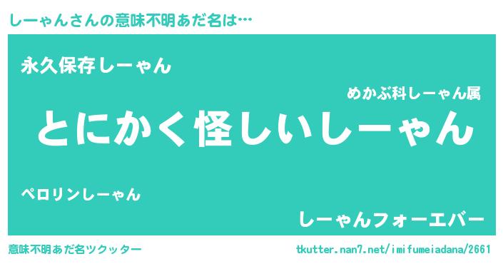 | 欧米人風あだ名 | 『しーゃん・ステッグマイヤー』 |
