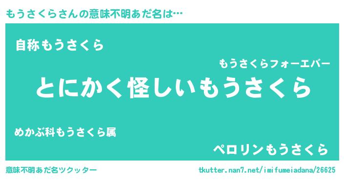 | 女子向けラノベタイトル風あだ名 | 『もうさくら様がみてる』 |