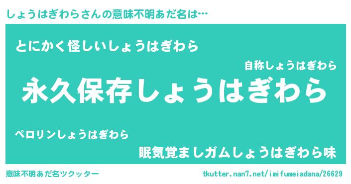 | ヘコむあだ名 | 『しょうはぎわら(笑)』『しょ太郎』 |
