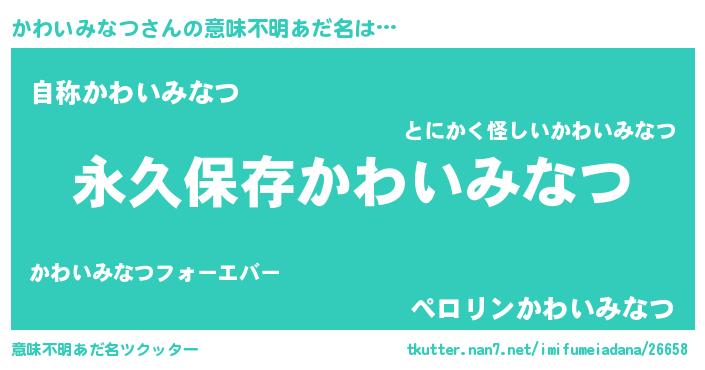 | ヒーロー風カッコイイあだ名 | 『ネオカワイミナツ』『魔戒騎士カワ』 |