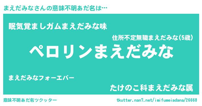 | 胡散臭い通販商品みたいなあだ名 | 『億万長者になれる水晶球…その名も「まえだみな」』 |