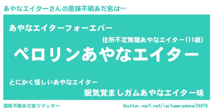 | 胡散臭い通販商品みたいなあだ名 | 『必ず成功する霊験あらたかなお札…その名も「あやなエイター」』 |