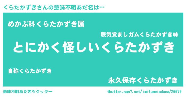 | 胡散臭い通販商品みたいなあだ名 | 『信頼と実績のペンダント…その名も「くらたかずき」』 |