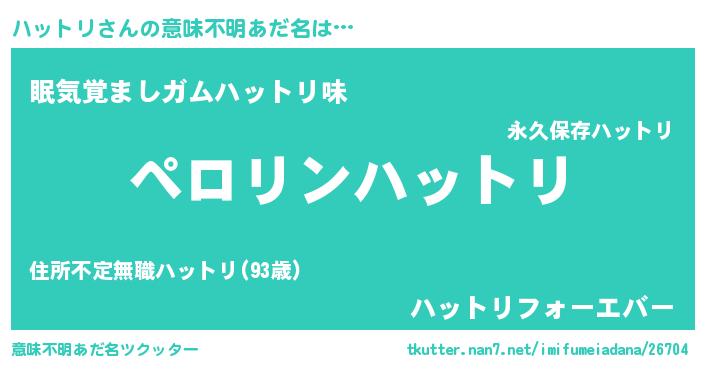 | 男性向けラノベタイトル風あだ名 | 『ハットリの憂鬱』 |