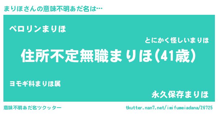 | 男性向けラノベタイトル風あだ名 | 『この素晴らしい世界にまりほを!』 |