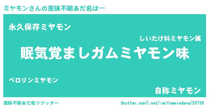 | 男性向けラノベタイトル風あだ名 | 『ミヤモンに滅ぼされるだけの簡単なお仕事です』 |