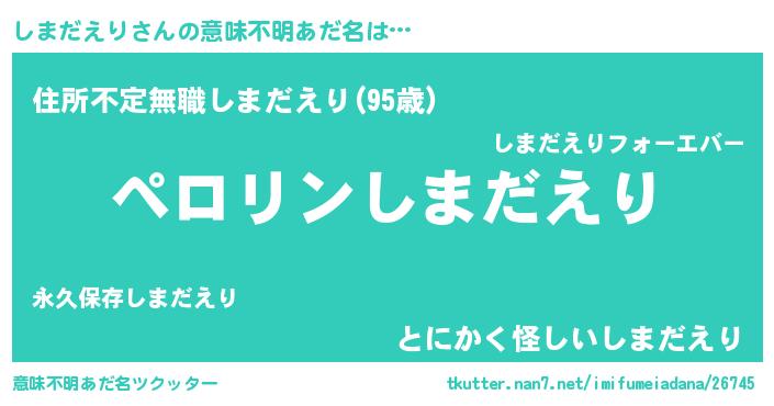 | ファンタジー風あだ名 | 『シマフェル』『ヴァルシマーナ』 |