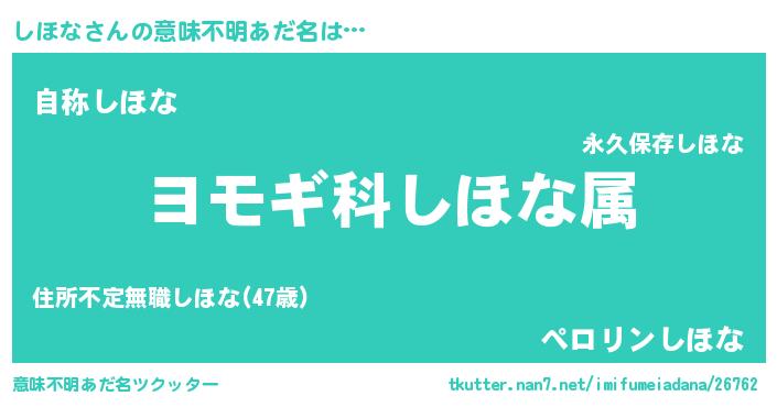 | 男性向けラノベタイトル風あだ名 | 『しほな~年齢イコール彼女いない歴の魔法使い~』 |