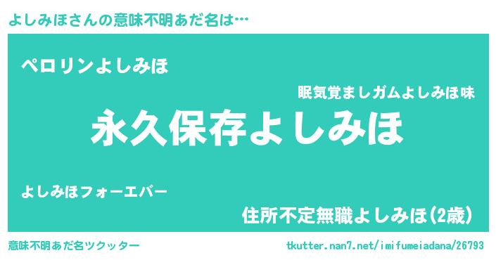 | ヘコむあだ名 | 『よしみほ(小並感)』『よしにー』 |