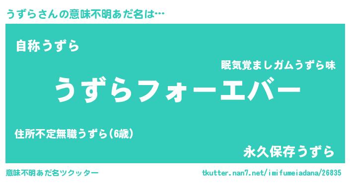 | 女子向けラノベタイトル風あだ名 | 『うずらの雑貨屋さん』『闇のうずら』 |
