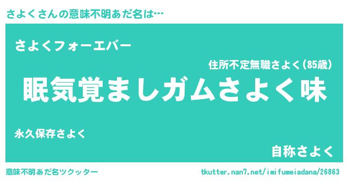 | 女子向けラノベタイトル風あだ名 | 『さよく夫妻のなれそめ』『闇のさよく』 |