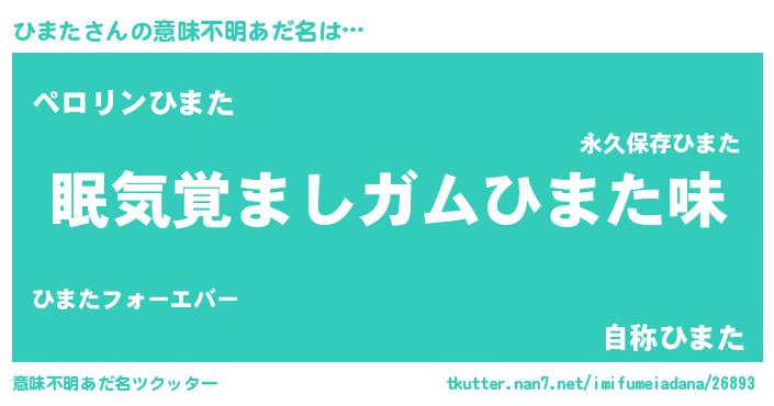 | ヘコむあだ名 | 『ひまふぇ~』『ひまた(小並感)』 |