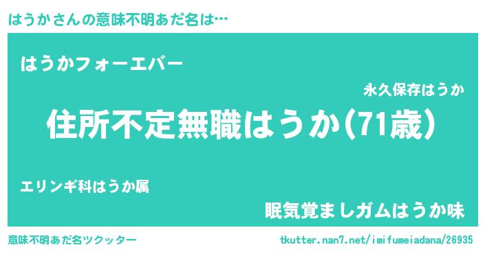 | 欧米人風あだ名 | 『はうか・ステッグマイヤー』 |