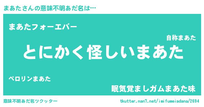 | 男性向けラノベタイトル風あだ名 | 『まあたの嫁は女の子じゃないと思った?』 |