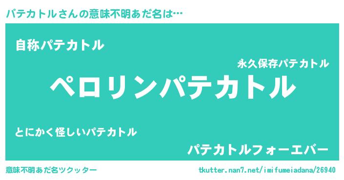 | 男性向けラノベタイトル風あだ名 | 『緋弾のパテカトル』『パテカトルの憂鬱』 |